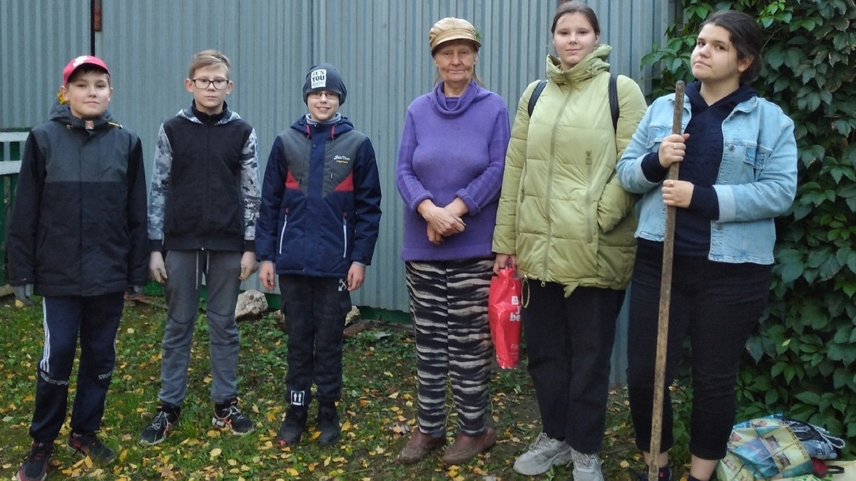 Ребята помогли женщине с уборкой цветов в огороде, навели порядок в саду.