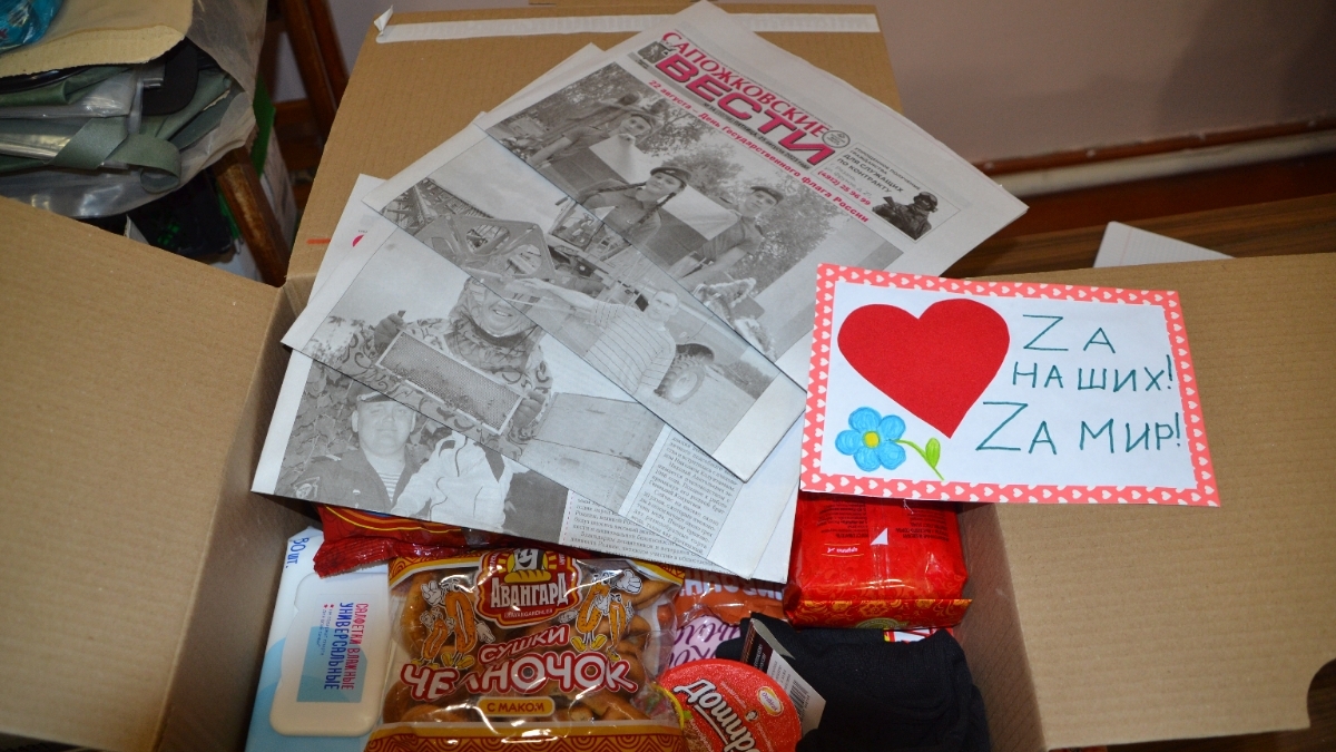 На прошлой неделе очередная партия гуманитарной помощи от сапожковцев отправилась в зону специальной военной операции. Администрация района, предприниматели, волонтеры, неравнодушные жители собрали для бойцов 15 коробок с продуктами питания, средствами гигиены, одеждой, письмами и открытками с теплыми словами поддержки. На передовую также отправили 40 номеров газеты «Сапожковские вести».