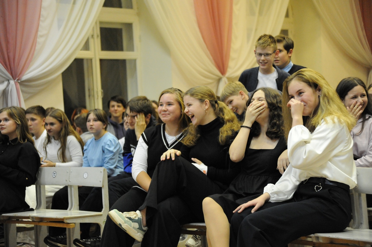 Восьмиклассники подготовили визитные карточки, удивили и порадовали зрителей творческим домашним заданием. Кульминацией вечера стали выборы председателя совета старшеклассников. В этом году им стал ученик 10 класса Игорь Добрынин. В завершение церемонии посвящения новобранцы произнесли клятву и пожали руку директору.