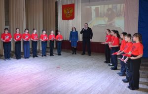 Ребята дали клятву юнармейцев и спели песню «Служить России».