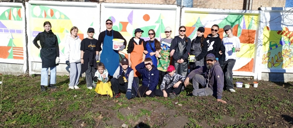 В создании настенной росписи участвовали директор школы искусств Марина Захарьящева, преподаватели Владимир Петунин, Елена Дрокина, Зарина Забненкова, Алексей Шашин, гардеробщица Татьяна Скоблина и ученики художественного, музыкального и хореографического отделений. Впереди – еще много работы. Но команда творцов обещает: еще несколько теплых дней и граффити будет готово.