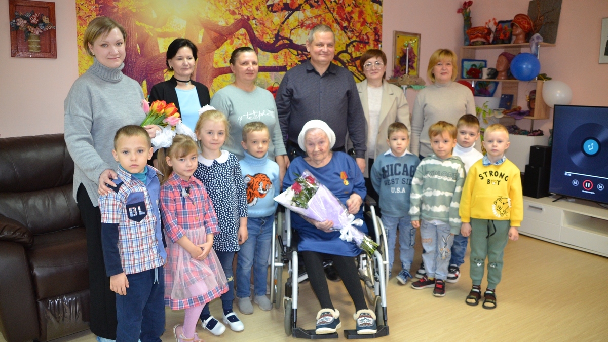 С днем рождения Клавдию Павловну поздравил директор комплексного центра Павел Жариков и воспитанники средней группы Сапожковского детского сада с воспитателями Светланой Дворниковой и Инной Щевьевой. Дошколята подарили бабушке цветы и спели для нее песни военных лет.