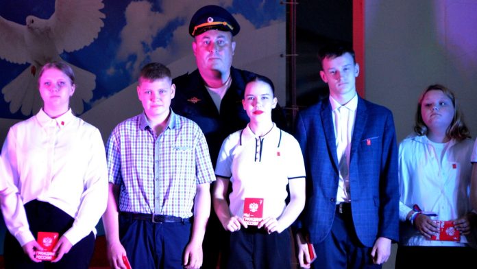 12 июня на праздновании Дня России сапожковские школьники получили паспорта. Их ребятам вручил начальник сапожковского пункта полиции подполковник Вячеслав Барсуков.
