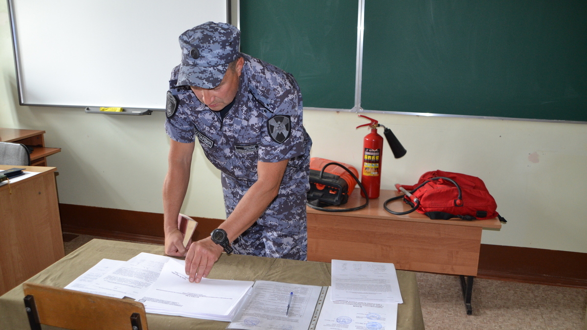 Начальник пункта централизованной охраны отделения вневедомственной охраны города Кораблино Роман Епихин проверил антитеррористическую защищенность учреждений: работоспособность технических средств защиты, наличие стендов и памяток, а также посмотрел журналы и необходимую документацию.