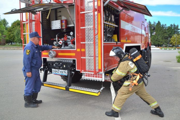 25 августа в Сапожке прошли плановые противопожарные учения. На них сотрудники ПСЧ №36 отработали действия по ликвидации условного возгорания и спасению людей.