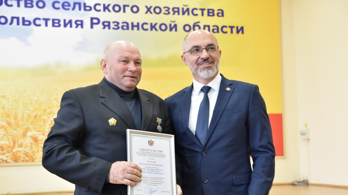 24 октября министр сельского хозяйства и продовольствия Рязанской области Дмитрий Филиппов вручил свидетельства о занесении на областную Доску почета лучшим сотрудникам предприятий и организаций АПК области. Среди них – сапожковец Владимир Евсеев.