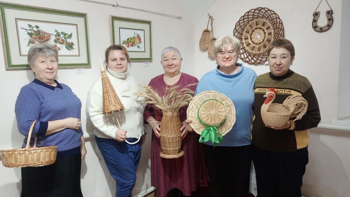 Всего на ней представлены работы 14-ти мастеров. Это разнообразные изделия, большую часть из которых занимает изящное плетение из бумажной и ивовой лозы.