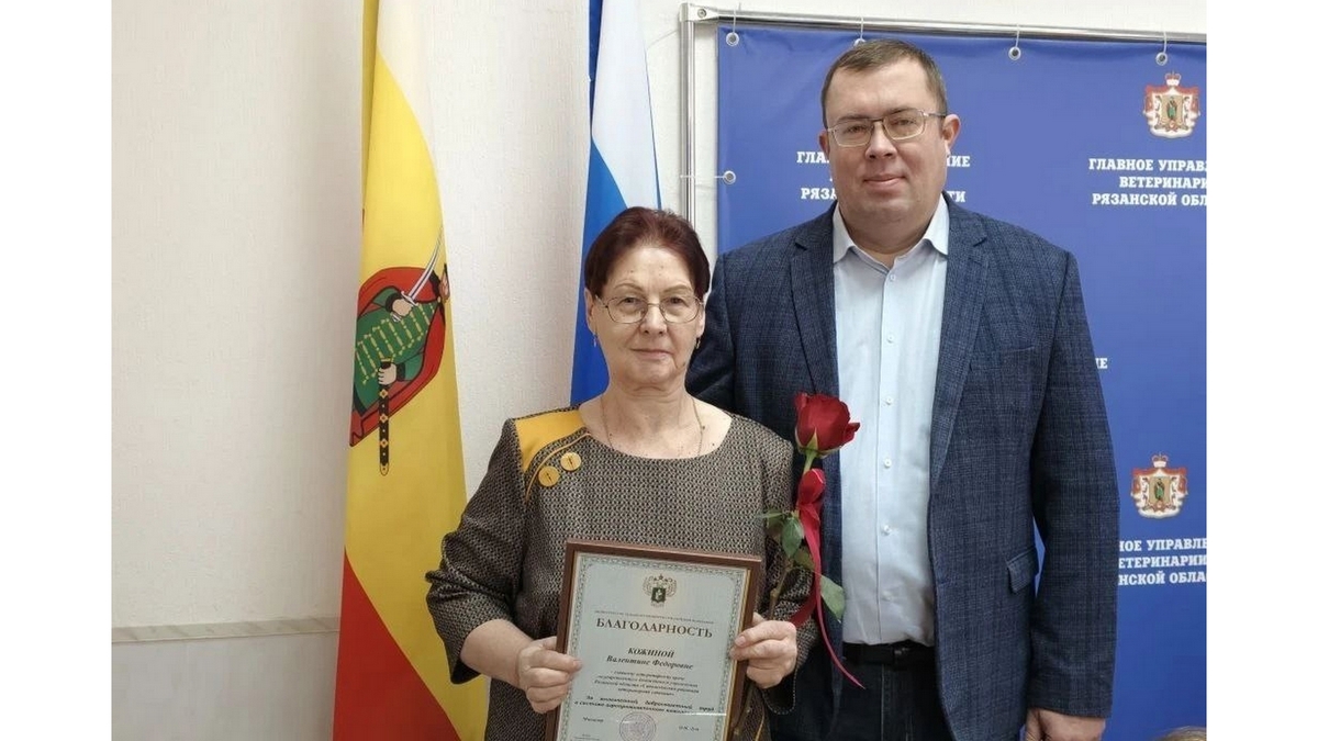 29 января начальник главного управления ветеринарии Рязанской области Михаил Балакирев вручил благодарность Министерства сельского хозяйства РФ главному ветврачу Сапожковской райветстанции Валентине Кожиной.