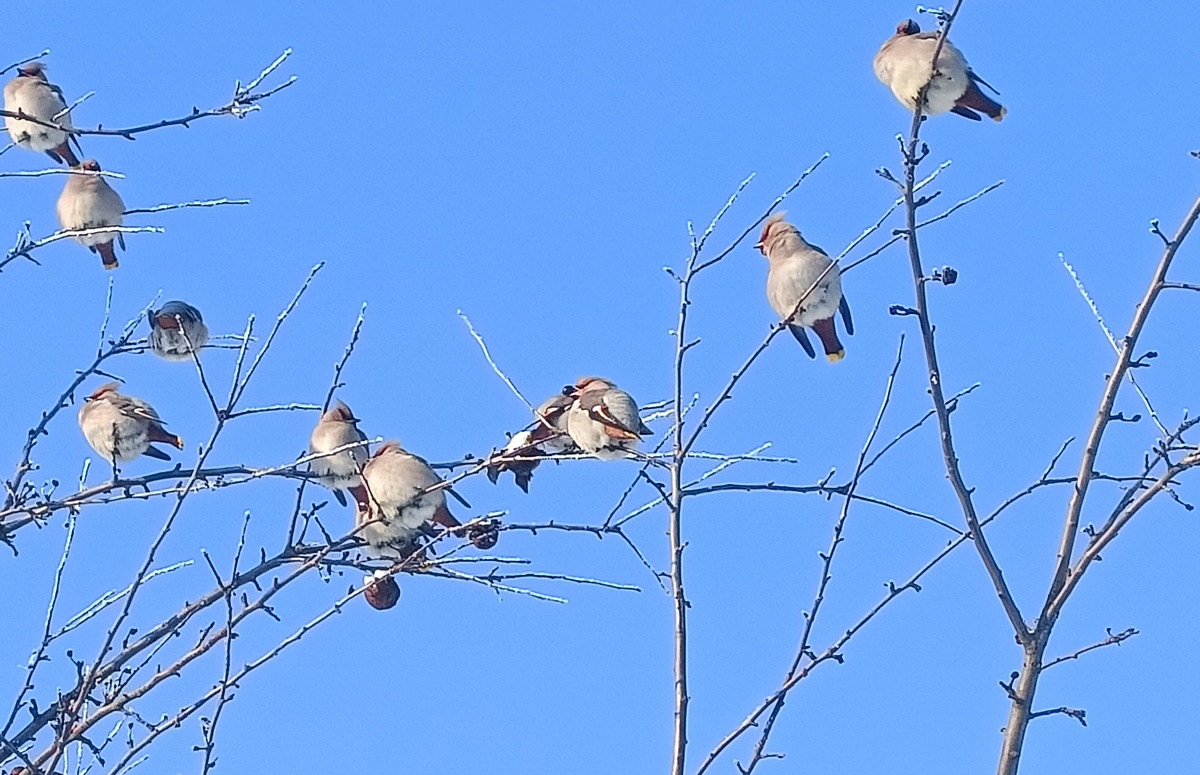 3 февраля в Сапожке на улице Первомайская местный житель сфотографировал на свой телефон красивых птиц. Они клевали замерзшие плоды черноплодной рябины. Позже он узнал, что это свиристели.