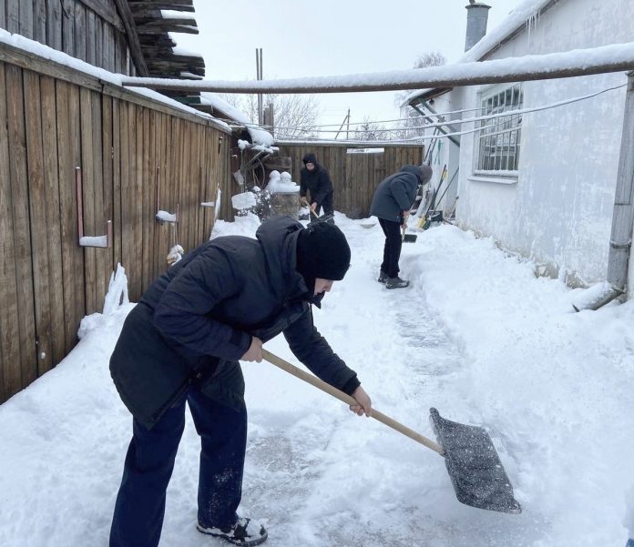 Так же волонтеры помогли с уборкой снега пожилым людям, проживающим на улицах: Фрунзе, Почтовой, Ленина, Коровинской, Садовой и в микрорайоне Малинники.